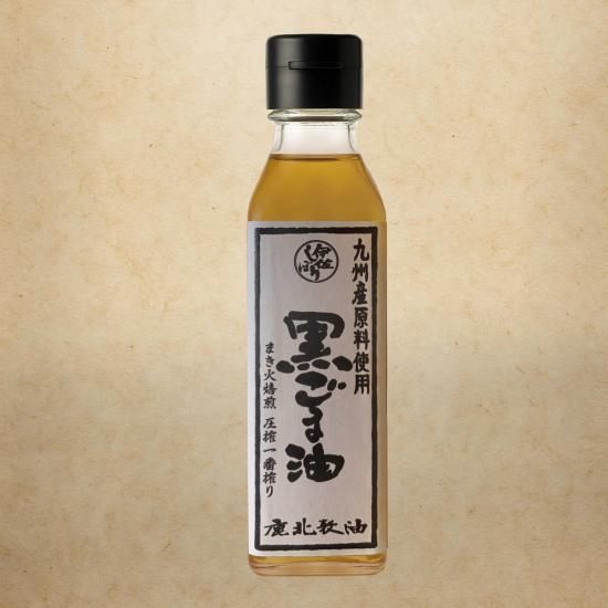 契約栽培にて栽培した栽培期間中農薬不使用の九州産黒ごまを、薪を焚いてやさしく釜煎りし古式圧搾一番搾り。精製は手漉き和紙でろ過するだけで、添加物や化学薬品等は一切使用していません。